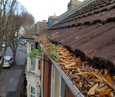 We offer a professional gutter cleaning service. Why is it so important? Clogged gutters (leaves, moss and other debris) can cause water damage to both the inside and outside of your property. Neglected guttering could lead to expensive repair bills.
